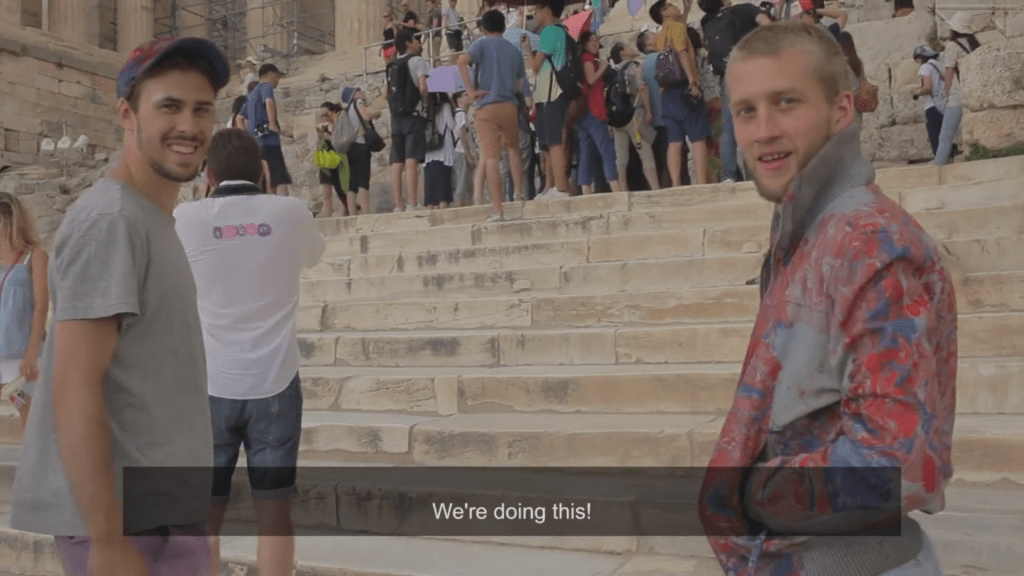 In “Europe” the characters are three young boys, searching for guidance in a revolutionary leader throughout Europe, traveling on kickbikes.